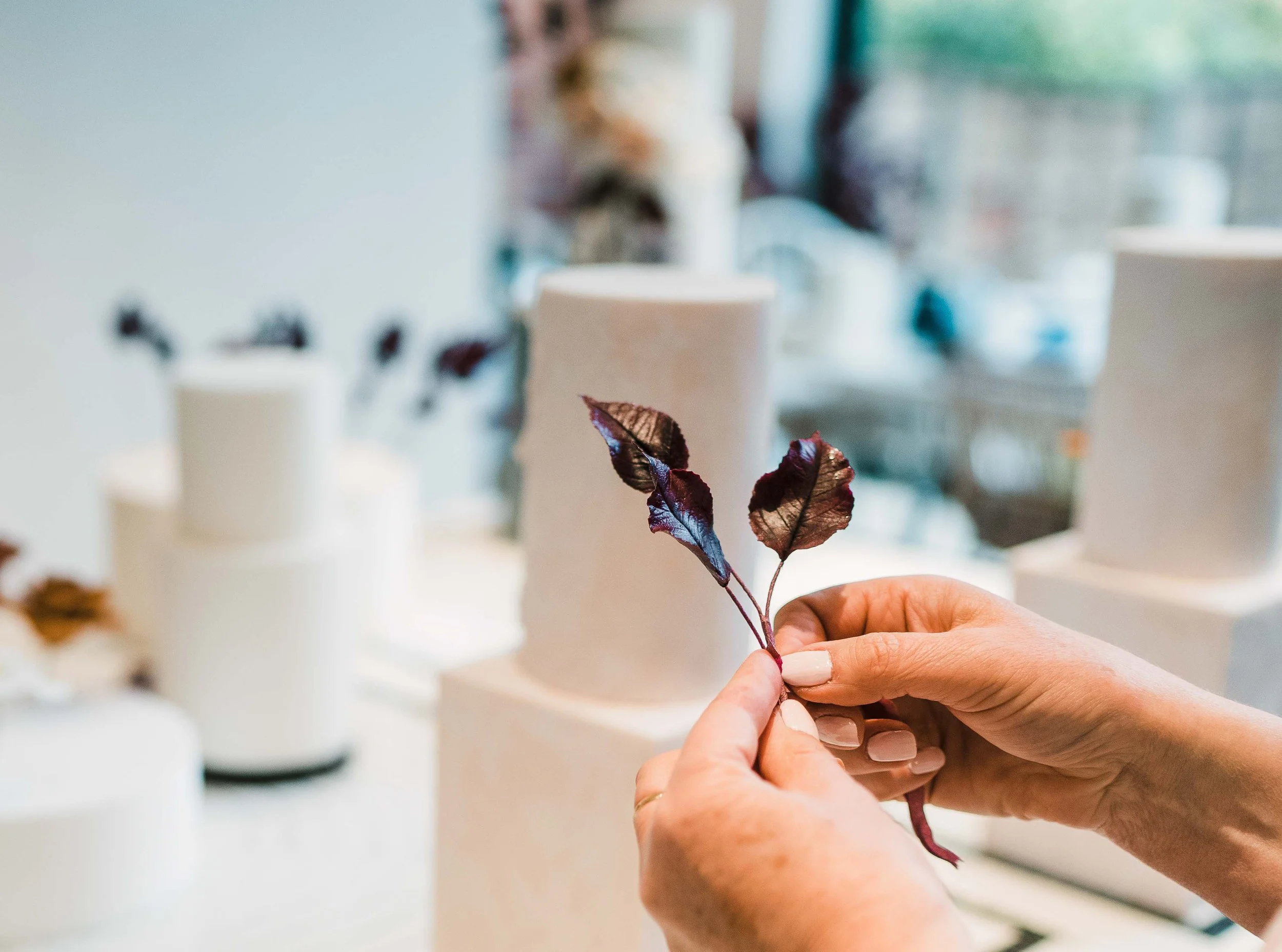 How to handle, work with and colour flower paste A comprehensive guide to our chosen flower making tools How to make individually wired flowers How to make non-wired flowers How to make wired foliage How to make buds and berries How to texture and shape flowers and foliage How to dry and tape flowers and foliage together The art of mixing and adding colour and different finishes to your flowers and foliage The key principles behind Rachel’s contemporary flower arranging